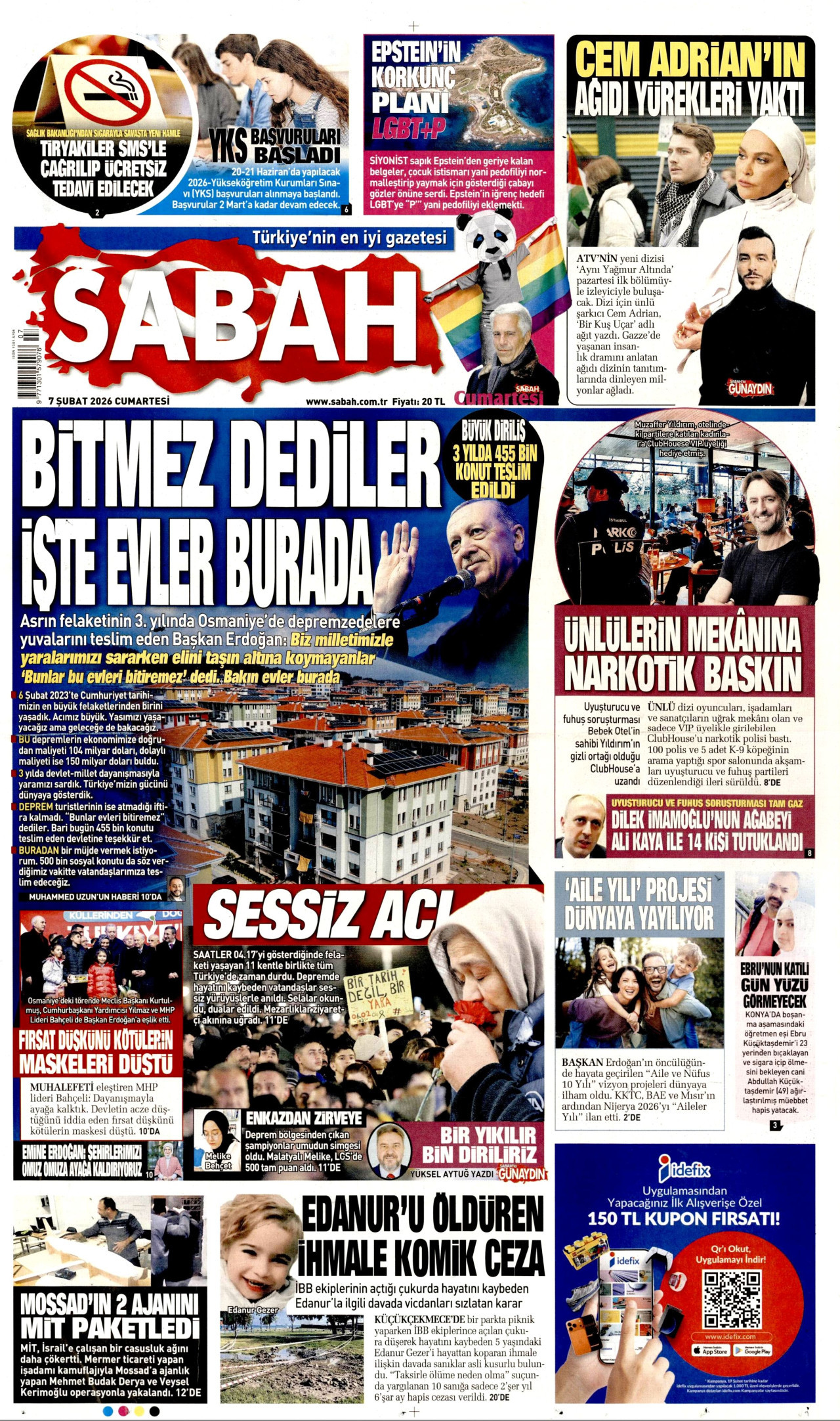 SABAH Gazetesi 07 Şubat 2026, Cumartesi Günü Manşeti